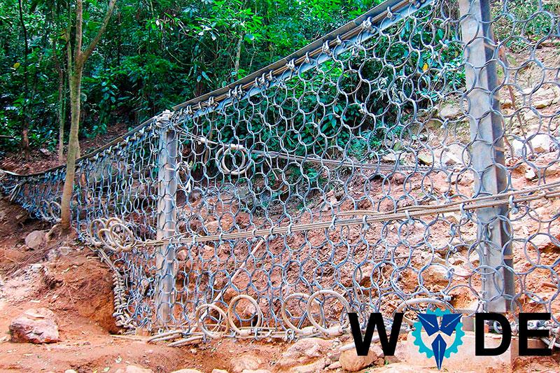 A malha(rede) de aço é flexível e, em caso de queda da rocha, ela se deforma, absorvendo o impacto e acomodando o bloco rochoso. Parte da energia se dissipa por meio da deformação rede elástica / plástica, enquanto a maior parte da energia se dissipa mediante elementos de travagem.
